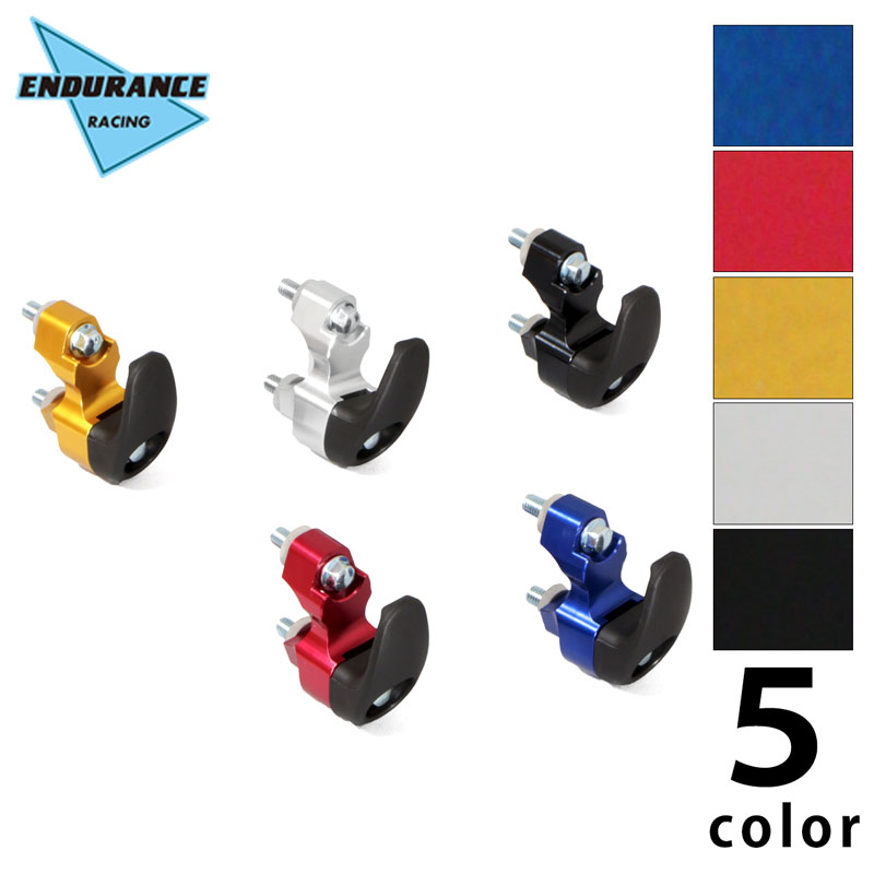 ENDURANCEオリジナルのコンビニフック! ちょっとした買い物で、小袋などの荷物をかけられる便利なアイテムです。 また、本体もアルミの削り出し+アルマイト加工をしてあるので、 見た目もオシャレでワンポイントアクセサリーとしてもオススメです。 ※ こちらの商品はマスターシリンダーホルダーの代わりに取り付けするタイプになります。 (ハンドルバーに直接取り付けしたい場合には「Hコンビニフック タイプ2」をご購入ください。)