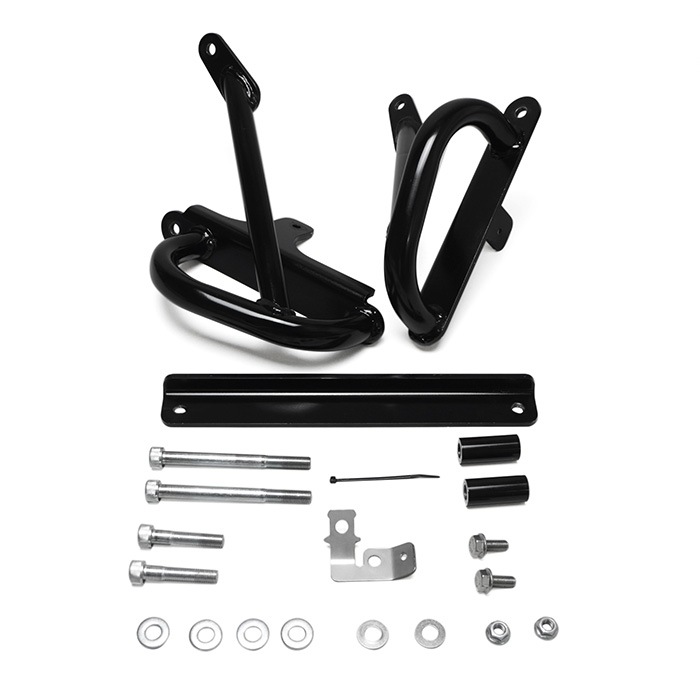 立ちゴケ等の軽度な転倒でのペダル類やエンジン等のダメージを最大限軽減するようにデザインしました。 パイプ径は25.4mmを使用しています。 |