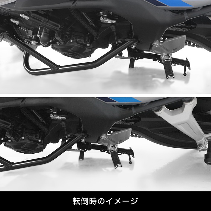立ちゴケ等の軽度な転倒でのペダル類やエンジン等のダメージを最大限軽減するようにデザイン