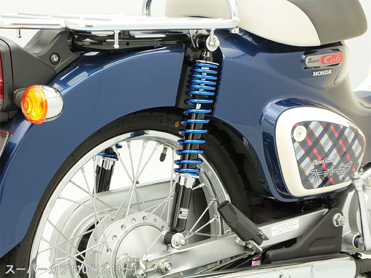 他車種で好評だったリアサスペンションがカブ用として登場! スタンダードのサスペンションより少し硬めのダンパー設定にすることで