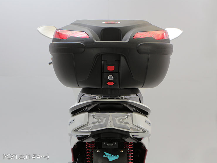 ツーリングに欠かせないBOXベースプレートとボックスが一緒になったセット! 高強度と軽量化を考慮し、5mm厚のアルミニウム材をベース部に採用したことで50LクラスのBOXにも対応する8kgの最大積載量。 ※PCX125(JF28全モデル)とPCX150(KF12全モデル)は車体の穴加工または加工済みリアカウルが必要となります。
