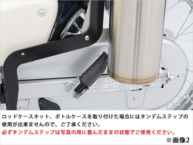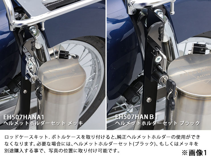 ● 純正ヘルメットホルダーの使用ができなくなりますので必要な場合には ヘルメットホルダーセット(ブラック)を別途購入することで、写真の位置に取り付け可能です。(画像1) ● タンデムステップの使用ができませんので、ご了承ください。(画像2) ● 本商品は、純正ノーマル車両への取り付けを前提としていますので、それ以外の部品との同時取り付けや本商品取り付け周辺の変更がある車両への取り付けは保証できませんのでご了承ください。 ● (※)取付時間は、オートバイに関する整備の一般的な知識および技能を有する国家資格をお持ちの整備士の方で、かつ必要な工具をすでにお持ちの方を前提としております。また、取付時間の参考ですので、工賃等の目安にはなりません。 ● 適合車種に記載のある車種以外の取り付け確認はしておりません。記載されていない車種は取付不可・または未確認です。 ● 適合車種に記載のない車種への取り付けは、保証いたしかねます。 ● 商品の色味は撮影条件やモニター、商品ロットやセット商品の左右で異なる場合もございますが、返品・交換等はお受けいたしかねます。 ● ヘルメットホルダーを取り付けた際は、走行時ヘルメットホルダーに物を掛けたまま走行しないでください。 |