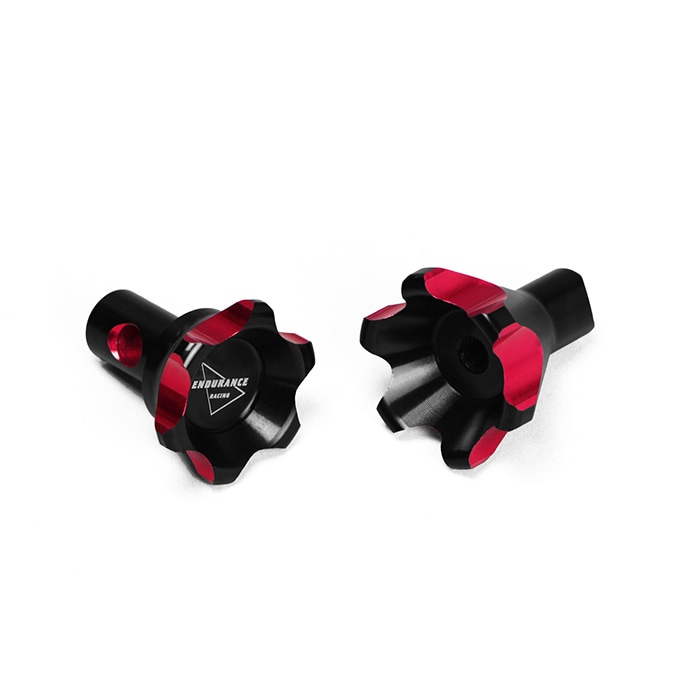 リアタイヤ周りのワンポイントアクセサリーとしておすすめ! アルミ材から削り出し、カラーアルマイト処理を施すことで色鮮やかな仕上がり。 また、切削加工・アルマイト加工を交互に2度行うことで2色のカラーアルマイトを実現。 見た目にも高級感、存在感があります。 ロゴはレーザーマーキングを採用しているので簡単に剥がれたりする心配はありません。 取り付けは純正品を取り外して、交換するだけ。 |