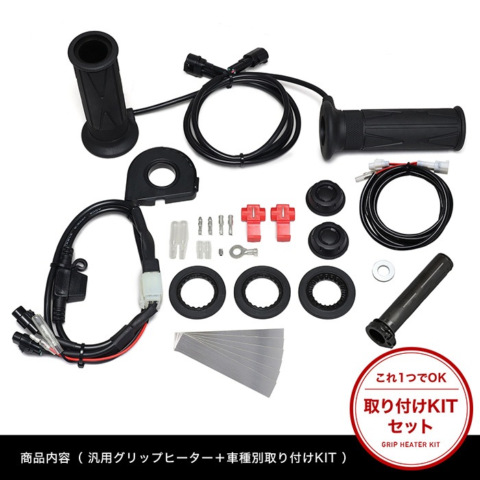 ● HIDキットや社外品のイグニッションコイルなど、高電圧ノイズが出る製品と同時に装着しないでください。適合は電装系が全てノーマル車のみです。 ● 「海外販売車両」「125cc以下の車両の発電量が低い車両」「年式の古い車両」への取り付けにはご注意ください。ご使用できない場合があります。 ● グリップヒーターは非常に高温になりますので、素手でのご使用はお止めください。 ● グローブ装着時でも同様に低温やけどをする恐れがありますので、十分にご注意ください。詳しくは取扱説明書をご覧ください。 ● (※)取付時間は、オートバイに関する整備の一般的な知識および技能を有する国家資格をお持ちの整備士の方で、かつ必要な工具をすでにお持ちの方を前提としております。また、取付時間の参考ですので、工賃等の目安にはなりません。 ● 適合車種に記載のある車種以外の取り付け確認はしておりません。記載されていない車種は取付不可・または未確認です。 ● 適合車種に記載のない車種への取り付けは、保証いたしかねます。 ● グリップヒーター通電時にはグリップからジーといった感じの音がしますが、この音は特に異常ではありません。 |