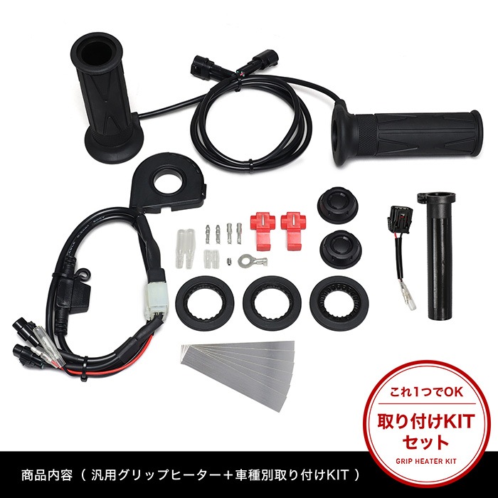 ● HIDキットや社外品のイグニッションコイルなど、高電圧ノイズが出る製品と同時に装着しないでください。適合は電装系が全てノーマル車のみです。 ● 「海外販売車両」「125cc以下の車両の発電量が低い車両」「年式の古い車両」への取り付けにはご注意ください。ご使用できない場合があります。 ● グリップヒーターは非常に高温になりますので、素手でのご使用はお止めください。 ● グローブ装着時でも同様に低温やけどをする恐れがありますので、十分にご注意ください。詳しくは取扱説明書をご覧ください。 ● (※)取付時間は、オートバイに関する整備の一般的な知識および技能を有する国家資格をお持ちの整備士の方で、かつ必要な工具をすでにお持ちの方を前提としております。また、取付時間の参考ですので、工賃等の目安にはなりません。 ● 適合車種に記載のある車種以外の取り付け確認はしておりません。記載されていない車種は取付不可・または未確認です。 ● 適合車種に記載のない車種への取り付けは、保証いたしかねます。 ● グリップヒーター通電時にはグリップからジーといった感じの音がしますが、この音は特に異常ではありません。 |