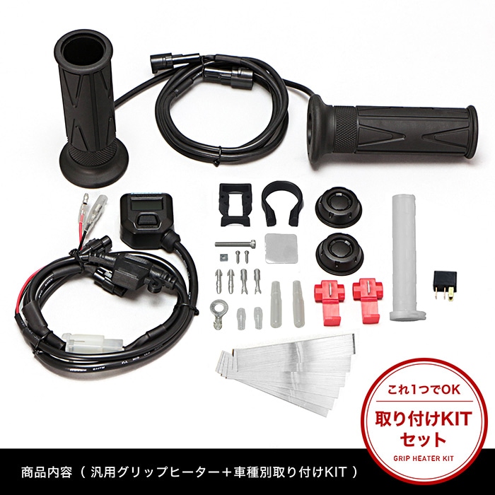 ● HIDキットや社外品のイグニッションコイルなど、高電圧ノイズが出る製品と同時に装着しないでください。適合は電装系が全てノーマル車のみです。 ● 「海外販売車両」「125cc以下の車両の発電量が低い車両」「年式の古い車両」への取り付けにはご注意ください。ご使用できない場合があります。 ● 同梱の両面テープは車体に直接貼り付ける等に使用してください。 ● 同梱の両面テープはハンドルブラケットを固定する時に使用しないでください。 ● グリップヒーターは非常に高温になりますので、素手でのご使用はお止めください。 ● グローブ装着時でも同様に低温やけどをする恐れがありますので、十分にご注意ください。詳しくは取扱説明書をご覧ください。 ● 汎用タイプの場合スロットルパイプは、車体についているものを加工するか、別売りのスロットルパイプを購入していただく必要があります。 ● (※)取付時間は、オートバイに関する整備の一般的な知識および技能を有する国家資格をお持ちの整備士の方で、かつ必要な工具をすでにお持ちの方を前提としております。また、取付時間の参考ですので、工賃等の目安にはなりません。 ● 適合車種に記載のある車種以外の取り付け確認はしておりません。記載されていない車種は取付不可・または未確認です。 ● 適合車種に記載のない車種への取り付けは、保証いたしかねます。 ● グリップヒーター通電時にはグリップからジーといった感じの音がしますが、この音は特に異常ではありません。 ● 商品の色味は撮影条件やモニター、商品ロットやセット商品の左右で異なる場合もございますが、返品・交換等はお受けいたしかねます。 |