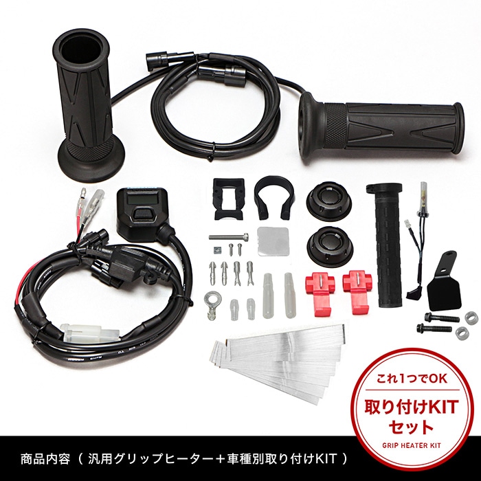 ● HIDキットや社外品のイグニッションコイルなど、高電圧ノイズが出る製品と同時に装着しないでください。適合は電装系が全てノーマル車のみです。 ● 「海外販売車両」「125cc以下の車両の発電量が低い車両」「年式の古い車両」への取り付けにはご注意ください。ご使用できない場合があります。 ● 同梱の両面テープは車体に直接貼り付ける等に使用してください。 ● 同梱の両面テープはハンドルブラケットを固定する時に使用しないでください。 ● グリップヒーターは非常に高温になりますので、素手でのご使用はお止めください。 ● グローブ装着時でも同様に低温やけどをする恐れがありますので、十分にご注意ください。詳しくは取扱説明書をご覧ください。 ● (※)取付時間は、オートバイに関する整備の一般的な知識および技能を有する国家資格をお持ちの整備士の方で、かつ必要な工具をすでにお持ちの方を前提としております。また、取付時間の参考ですので、工賃等の目安にはなりません。 ● 適合車種に記載のある車種以外の取り付け確認はしておりません。記載されていない車種は取付不可・または未確認です。 ● 適合車種に記載のない車種への取り付けは、保証いたしかねます。 ● グリップヒーター通電時にはグリップからジーといった感じの音がしますが、この音は特に異常ではありません。 |