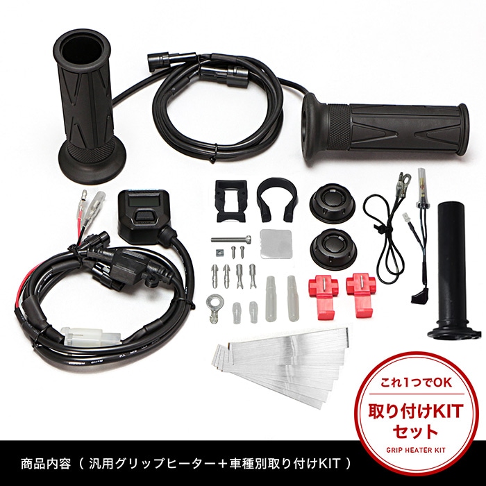 ● HIDキットや社外品のイグニッションコイルなど、高電圧ノイズが出る製品と同時に装着しないでください。適合は電装系が全てノーマル車のみです。 ● 「海外販売車両」「125cc以下の車両の発電量が低い車両」「年式の古い車両」への取り付けにはご注意ください。ご使用できない場合があります。 ● 同梱の両面テープは車体に直接貼り付ける等に使用してください。 ● 同梱の両面テープはハンドルブラケットを固定する時に使用しないでください。 ● グリップヒーターは非常に高温になりますので、素手でのご使用はお止めください。 ● グローブ装着時でも同様に低温やけどをする恐れがありますので、十分にご注意ください。詳しくは取扱説明書をご覧ください。 ● (※)取付時間は、オートバイに関する整備の一般的な知識および技能を有する国家資格をお持ちの整備士の方で、かつ必要な工具をすでにお持ちの方を前提としております。また、取付時間の参考ですので、工賃等の目安にはなりません。 ● 適合車種に記載のある車種以外の取り付け確認はしておりません。記載されていない車種は取付不可・または未確認です。 ● 適合車種に記載のない車種への取り付けは、保証いたしかねます。 ● グリップヒーター通電時にはグリップからジーといった感じの音がしますが、この音は特に異常ではありません。 |