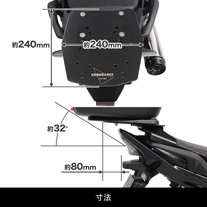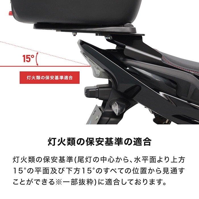 ●アルミニウムベースプレートの裏面には、材料自体に発生するわずかな凹みがある場合もございますが、商品不良ではありませんのでご了承ください。 ●対応BOXの詳細は必ず≪取扱説明書≫にてご確認のうえご購入ください。 ●アルミニウムベースプレートの後端より、ボックスベース(BOXに付属)を80mm以上後へ出した状態で使用しないでください。 ●本商品は、純正ノーマル車両への取り付けを前提としていますので、それ以外の部品との同時取り付けや本商品取り付け周辺の変更がある車両への取り付けは保証できませんのでご了承ください。 ●(※)取付時間は、オートバイに関する整備の一般的な知識および技能を有する国家資格をお持ちの整備士の方で、かつ必要な工具をすでにお持ちの方を前提としております。 ●適合確認車種に記載のある車種以外の取り付け確認はしておりません。記載されていない車種は取付不可・または未確認です。 ●適合確認車種に記載のない車種への取り付けは、保証いたしかねます。 ●商品の色味は撮影条件やモニター、商品ロットやセット商品の左右で異なる場合もございますが返品・交換等はお受けいたしかねます。 ●本商品は商品の形状および製造工程の特性上、着色時の電極痕やエアだまりによる色ムラが発生します。 ●積載量を超えないようにご利用ください。 ●ご購入前に、必ず取扱説明書に記載の内容をご確認ください。 |