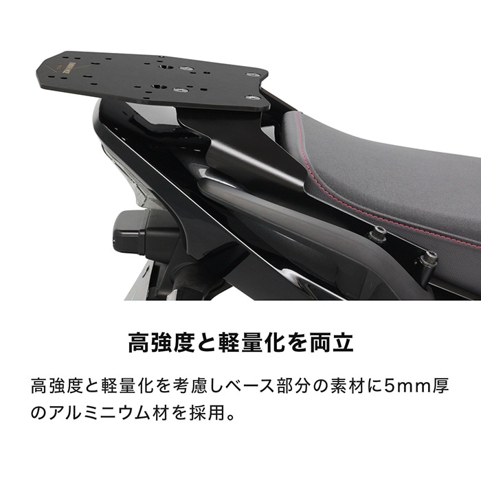 ツーリングに欠かせないBOXベースプレートとボックスが一緒になったセット! ベースプレート部は高強度と軽量化を考慮し、5mm厚のアルミニウム材を採用。