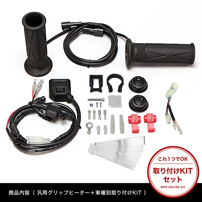 ● HIDキットや社外品のイグニッションコイルなど、高電圧ノイズが出る製品と同時に装着しないでください。適合は電装系が全てノーマル車のみです。 ● 「海外販売車両」「125cc以下の車両の発電量が低い車両」「年式の古い車両」への取り付けにはご注意ください。ご使用できない場合があります。 ● 同梱の両面テープは車体に直接貼り付ける等に使用してください。 ● 同梱の両面テープはハンドルブラケットを固定する時に使用しないでください。 ● グリップヒーターは非常に高温になりますので、素手でのご使用はお止めください。 ● グローブ装着時でも同様に低温やけどをする恐れがありますので、十分にご注意ください。詳しくは取扱説明書をご覧ください。 ● (※)取付時間は、オートバイに関する整備の一般的な知識および技能を有する国家資格をお持ちの整備士の方で、かつ必要な工具をすでにお持ちの方を前提としております。また、取付時間の参考ですので、工賃等の目安にはなりません。 ● 適合車種に記載のある車種以外の取り付け確認はしておりません。記載されていない車種は取付不可・または未確認です。 ● 適合車種に記載のない車種への取り付けは、保証いたしかねます。 ● グリップヒーター通電時にはグリップからジーといった感じの音がしますが、この音は特に異常ではありません。 |