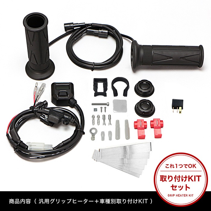● HIDキットや社外品のイグニッションコイルなど、高電圧ノイズが出る製品と同時に装着しないでください。適合は電装系が全てノーマル車のみです。 ● 「海外販売車両」「125cc以下の車両の発電量が低い車両」「年式の古い車両」への取り付けにはご注意ください。ご使用できない場合があります。 ● 同梱の両面テープは車体に直接貼り付ける等に使用してください。 ● 同梱の両面テープはハンドルブラケットを固定する時に使用しないでください。 ● グリップヒーターは非常に高温になりますので、素手でのご使用はお止めください。 ● グローブ装着時でも同様に低温やけどをする恐れがありますので、十分にご注意ください。詳しくは取扱説明書をご覧ください。 ● (※)取付時間は、オートバイに関する整備の一般的な知識および技能を有する国家資格をお持ちの整備士の方で、かつ必要な工具をすでにお持ちの方を前提としております。また、取付時間の参考ですので、工賃等の目安にはなりません。 ● 適合車種に記載のある車種以外の取り付け確認はしておりません。記載されていない車種は取付不可・または未確認です。 ● 適合車種に記載のない車種への取り付けは、保証いたしかねます。 ● グリップヒーター通電時にはグリップからジーといった感じの音がしますが、この音は特に異常ではありません。 |